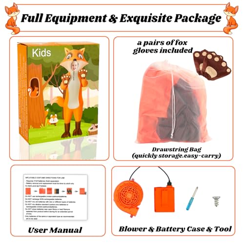 Specification: Inflatable Costumes for Kids Fox Costume Halloween Blow Up Fox Costumes Animals Suit for Boys Girls Cartoon Cosplay Party