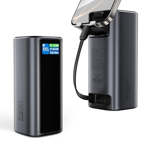 Laptop computer Energy Financial institution, 130W Transportable Charger with Twin Ports & Constructed-in Retractable Cable, 20000mAh Transportable Energy Financial institution with Sensible Digital Show, for iPhone 17/16/15 Professional/Professional Max Sequence, MacBook, Android