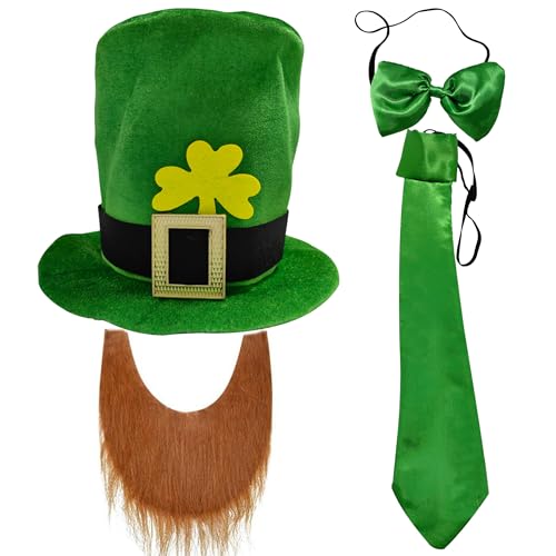 Eylola St. Patrick’s Day Party Costume Suit:St. Patrick’s Day Party Costume SuitIncludes Irish Leprechaun Costume Funny Hats, Bow, Beard, Scarf