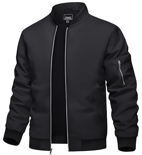 TACVASEN Bomber Jacket Males Black Jacket Informal Mens Jackets Informal Fashionable Light-weight Mens Windbrea