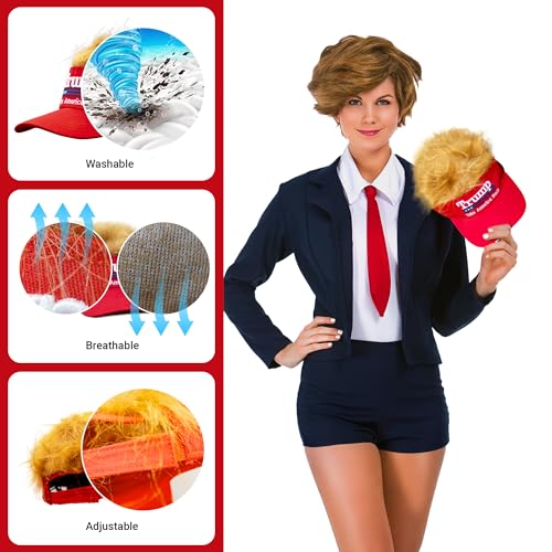 Specification: Trump Hat with Hair, Donald Trump Costume Merchandise Make America Nice Once more Wig Hat Embroidered Extremely Adjustable MAGA Golf Baseball Cap